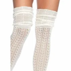 Opaque Thigh Highs W/ Eyelet Trim & Satin Lace Up Back