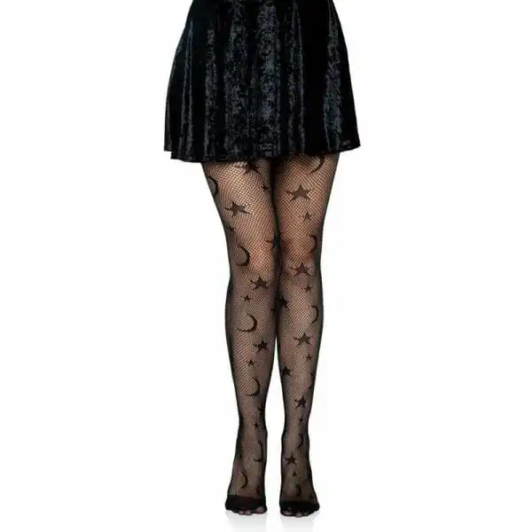 For a look thatโs out of this world, look to the Celestial Fishnet Tights by Leg Avenue. A surefire favorite, these fishnet tights are adorned with delicate stars and moons. This hosiery piece is the perfectly dainty finishing touch to any outfit!